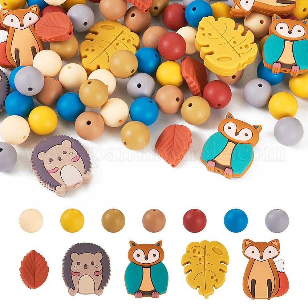69 шт. 12 стиль, экологически чистые силиконовые фокальные бусины пищевого качества, круглая & сова & лист & лиса