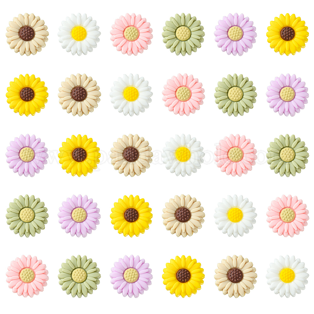 • Случайный цвет 20 шт., экологически чистые силиконовые фокусные бусины в форме ромашки, пищевые, изготовление ожерелий diy, случайный цвет, 19x7.5 мм, отверстие : 2.5 мм