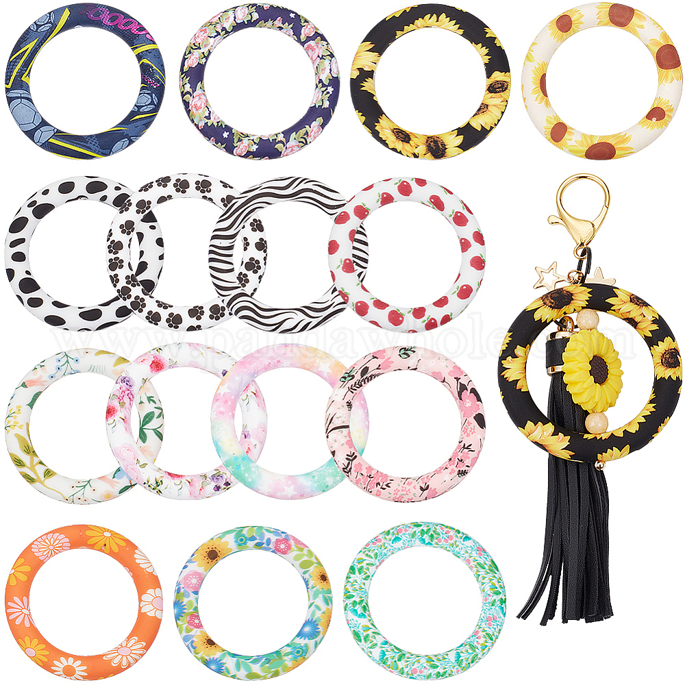 15 шт. 15 цвета, экологически чистые силиконовые подвески пищевого качества, кольцо