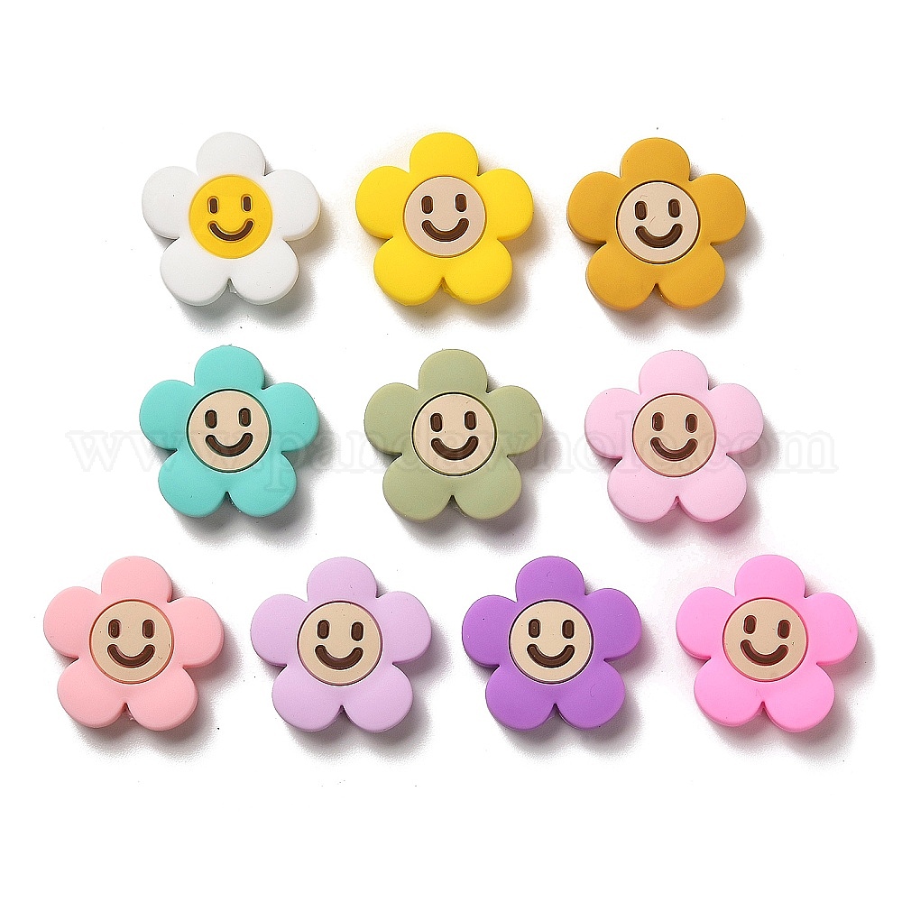200 шт 10 цвета силиконовые бусины, цветок с улыбающимся лицом
