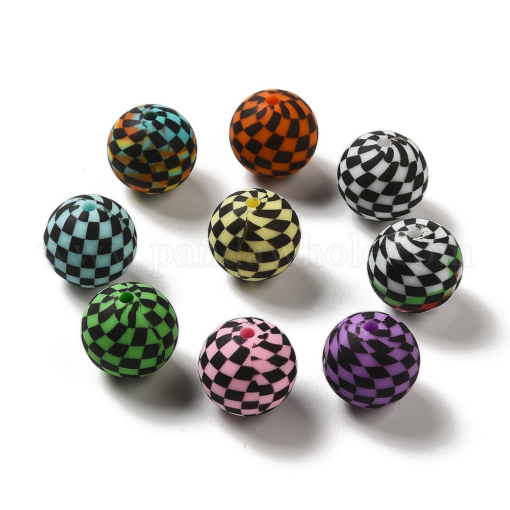 Непрозрачные силиконовые бусины, круглый с тартаном