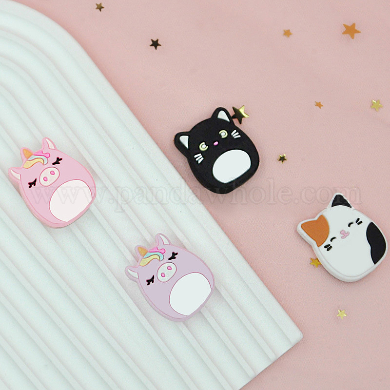• Pink Кошка в форме единорога, пищевые экологически чистые силиконовые фокусные бусины, розовые, 34x28 мм