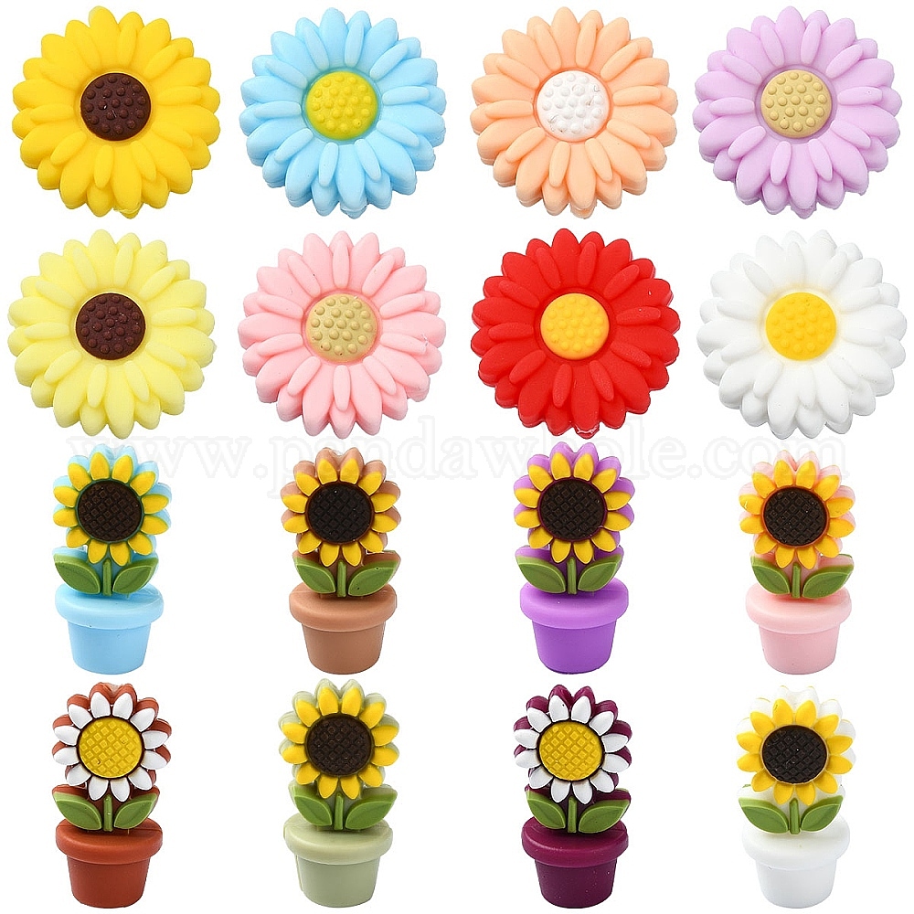 16 шт. 16 стили подсолнух/ромашка цветочный горшок пищевые экологически чистые силиконовые бусины