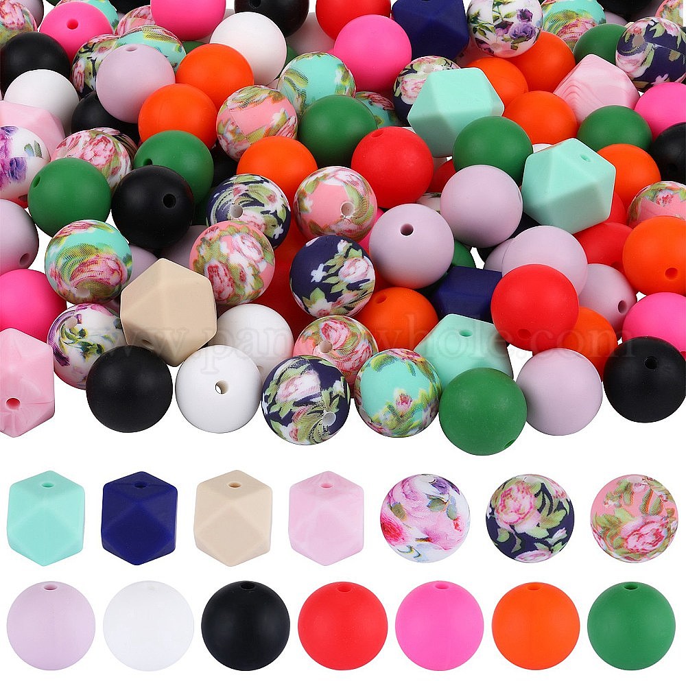 89шт. наборы силиконовых бусин с рисунком, разнообразные