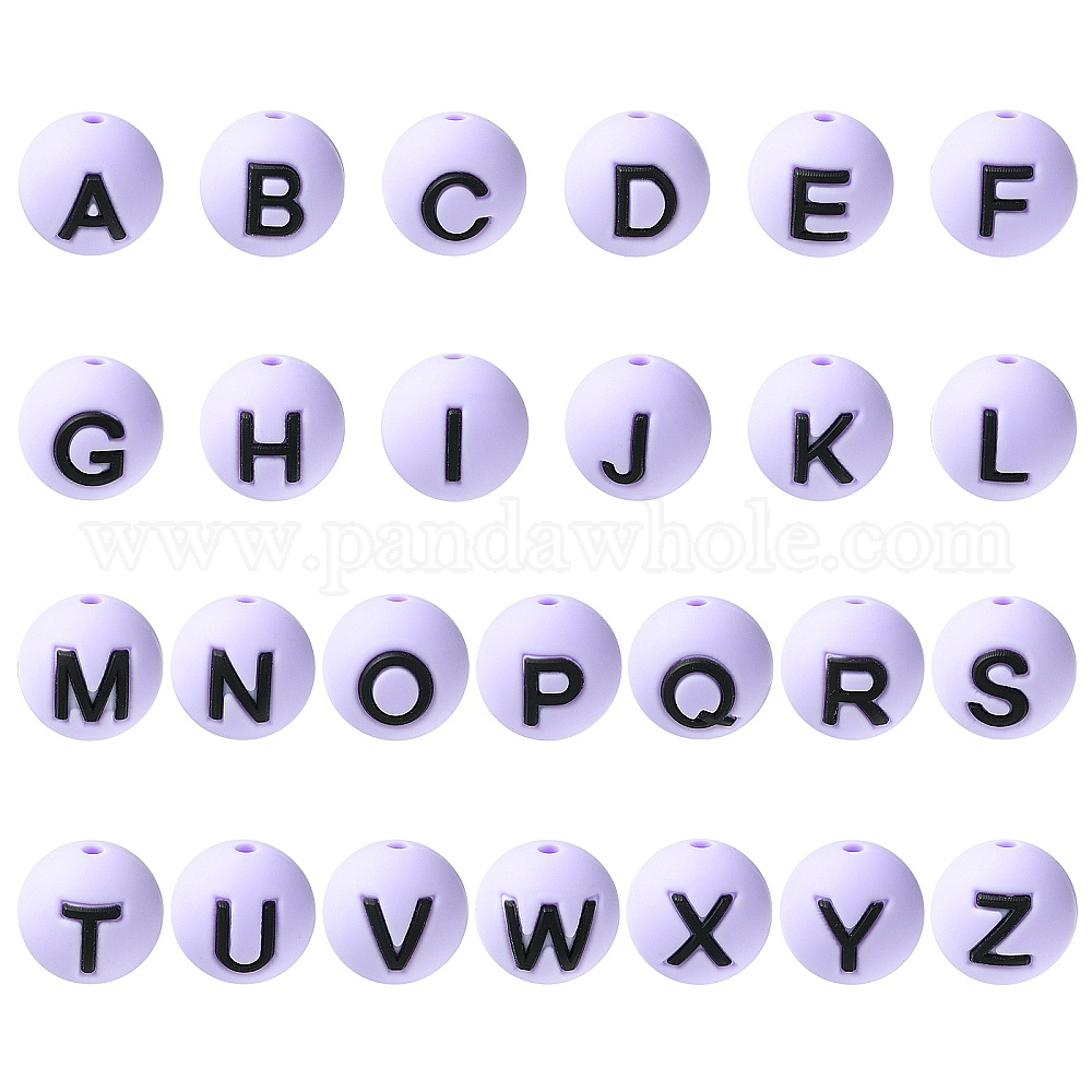 1 набор 26шт. фиолетовые круглые с буквами силиконовые бусины, фокусные бусы
