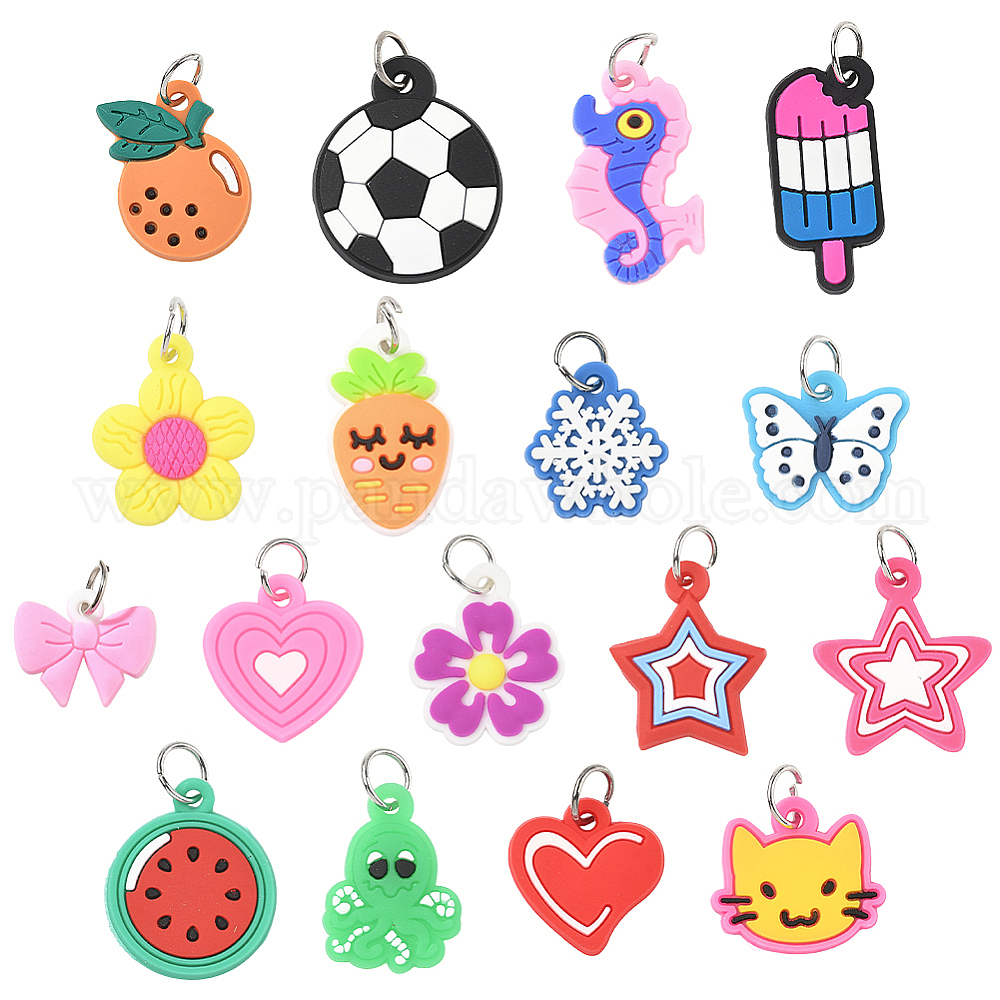 102шт. 17 стили силиконовых подвесок, с платиновым железом прыжковые кольца, разноцветные