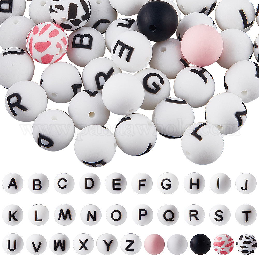 круглые бусины с буквами 26: примерно 15 мм, отверстие : 2 мм, 26 шт / комплект, 1 набор;