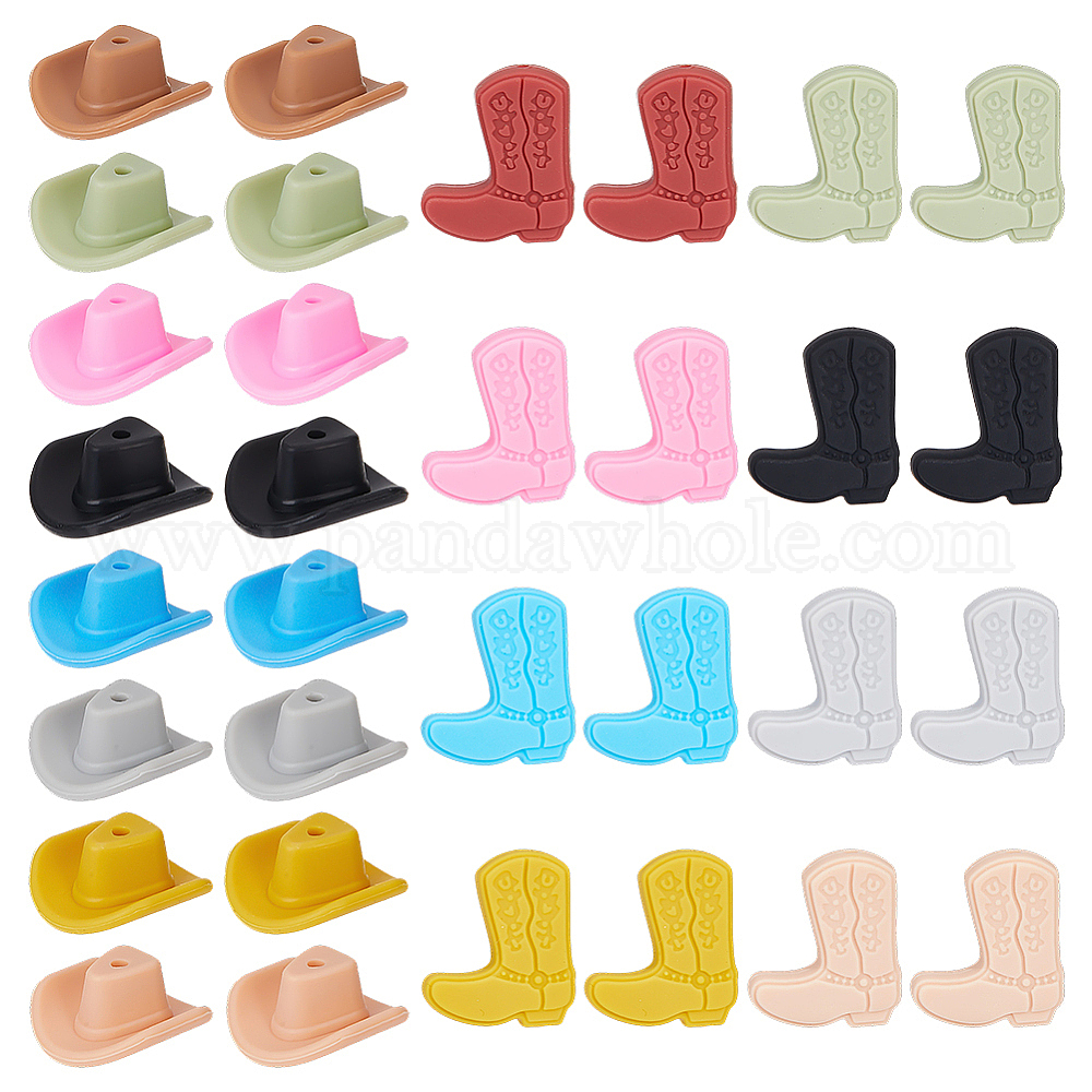 32шт. 16 стили ковбойская тематика пищевые экологически чистые силиконовые бусины, сапоги и шляпа