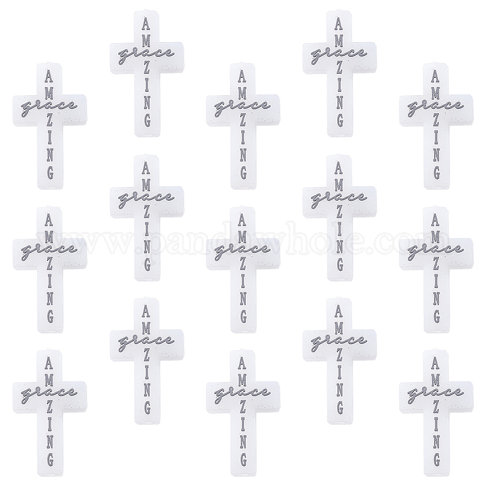 • Белый 15 шт силиконовые бусины, крестик, белые, 38x23x8 мм, отверстие : 3 мм