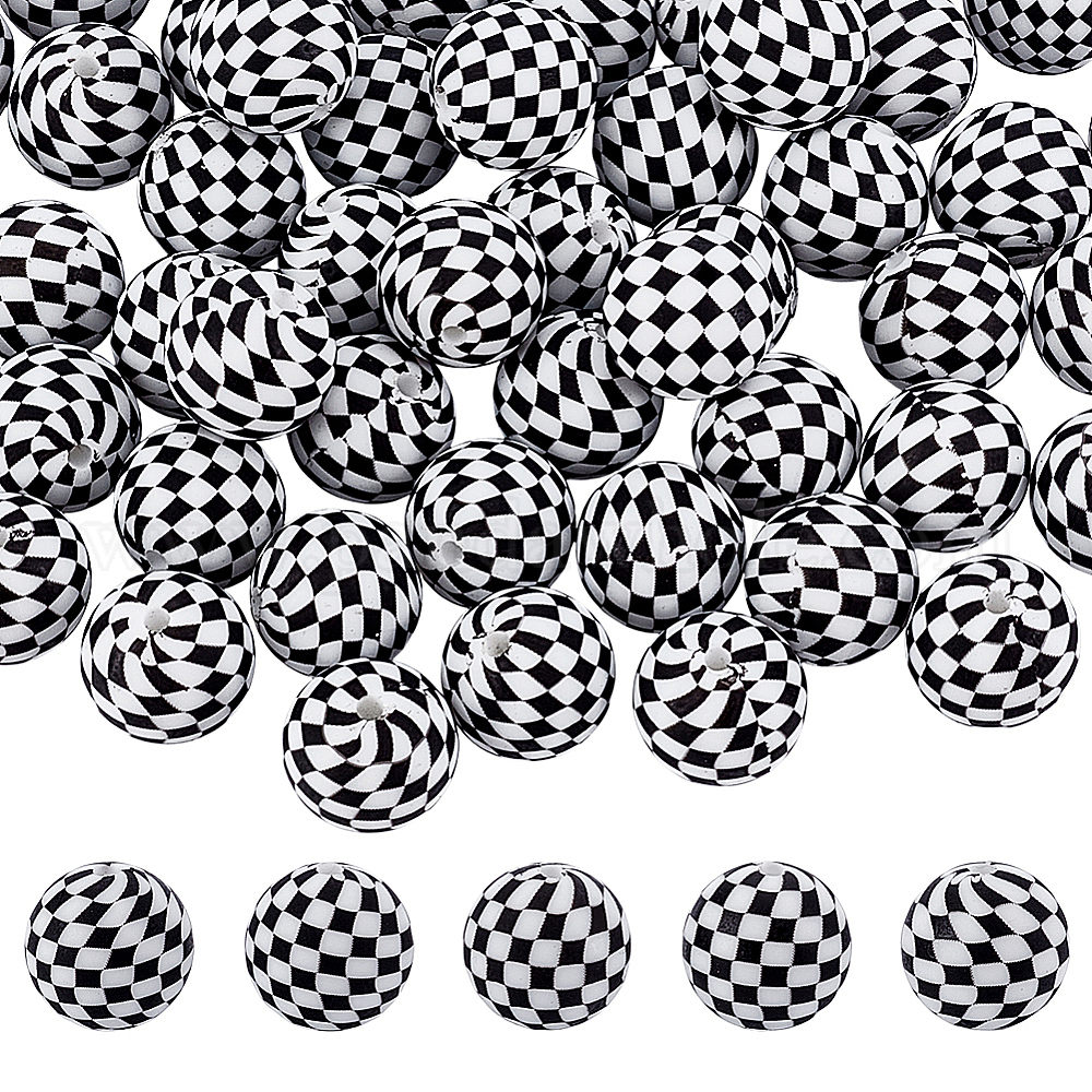 60шт. непрозрачные силиконовые бусины, круглый с тартаном
