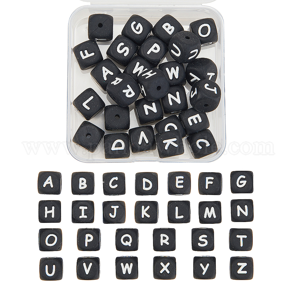 силиконовые шарики: длина 12 мм, шириной 12 мм , толщиной 12 мм , отверстие : 2 мм, 1 шт / письмо, 26 буквы, 26 шт / коробка;
