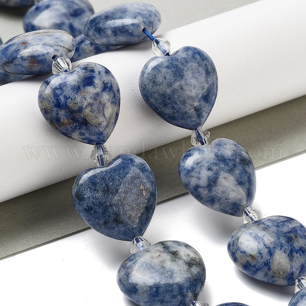 Натуральное синее пятно нитки из бисера яшмы, сердце, с бисером