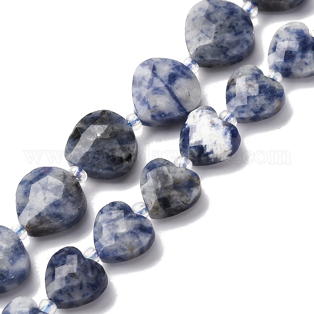 Натуральное синее пятно нитки из бисера яшмы, граненое сердце, с бисером