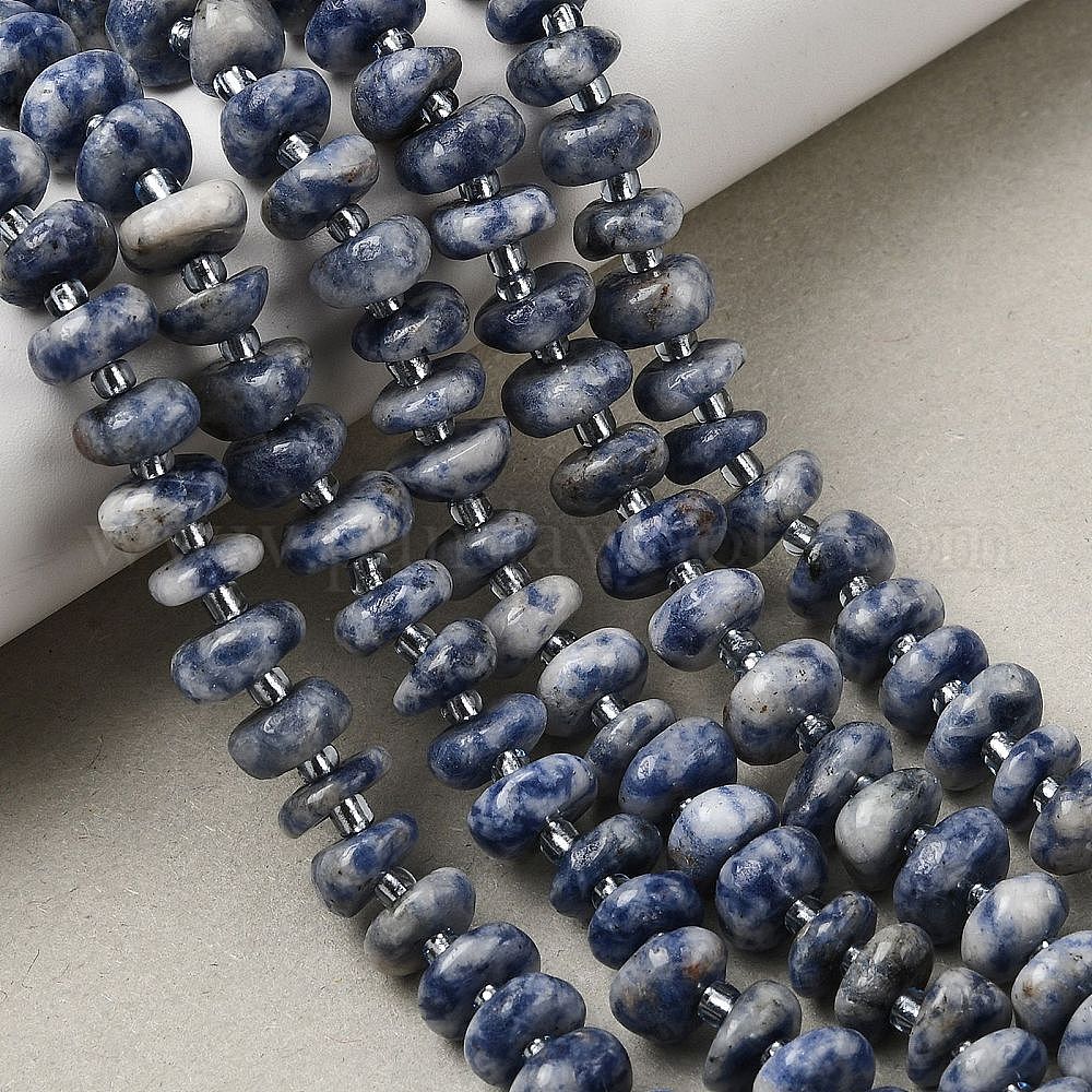 Натуральное синее пятно нитки из бисера яшмы, самородки, с бисером