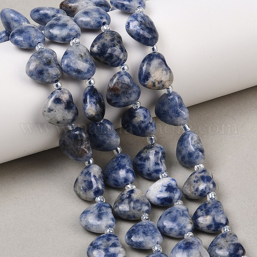 Натуральное синее пятно нитки из бисера яшмы, пухлое сердце, Топ пробуренной, с бисером
