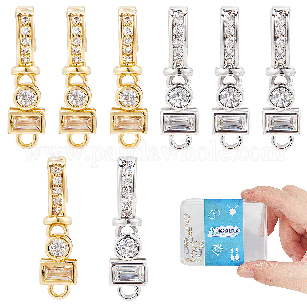 застежки из латуни, микропаве, прозрачный кубический цирконий, застежки: ширина около 0.16 дюйма (4 мм), 0.30 дюйм (7.5 мм) в длину, 0.12 дюйм (3 мм) толщиной, отверстие: 0.05 дюйм (1.2 мм), 2 цветов, 4 шт / цвет, 8 шт. В коробке;