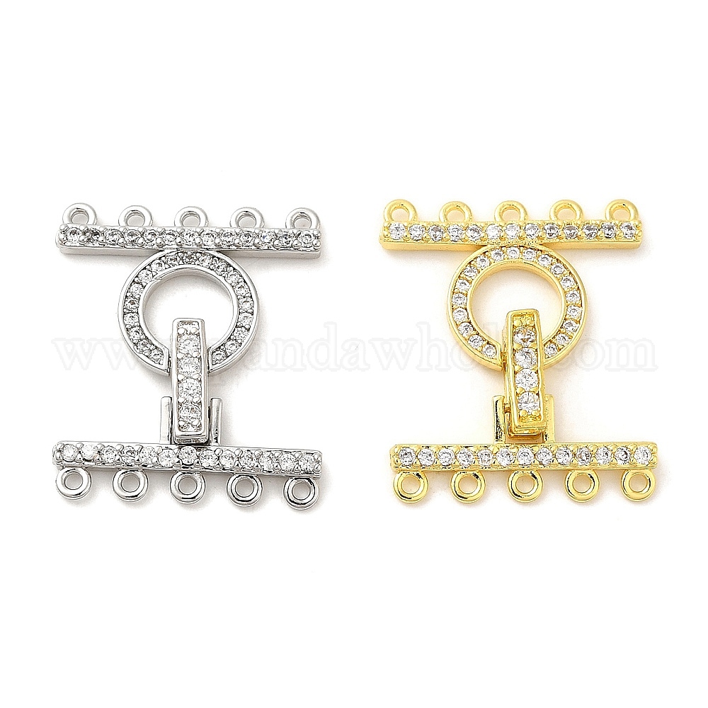 Реечное покрытие латунь микро паве прозрачный кубический цирконий складные застежки, долговечный, кольцо, 5 нитей, 10-луночное