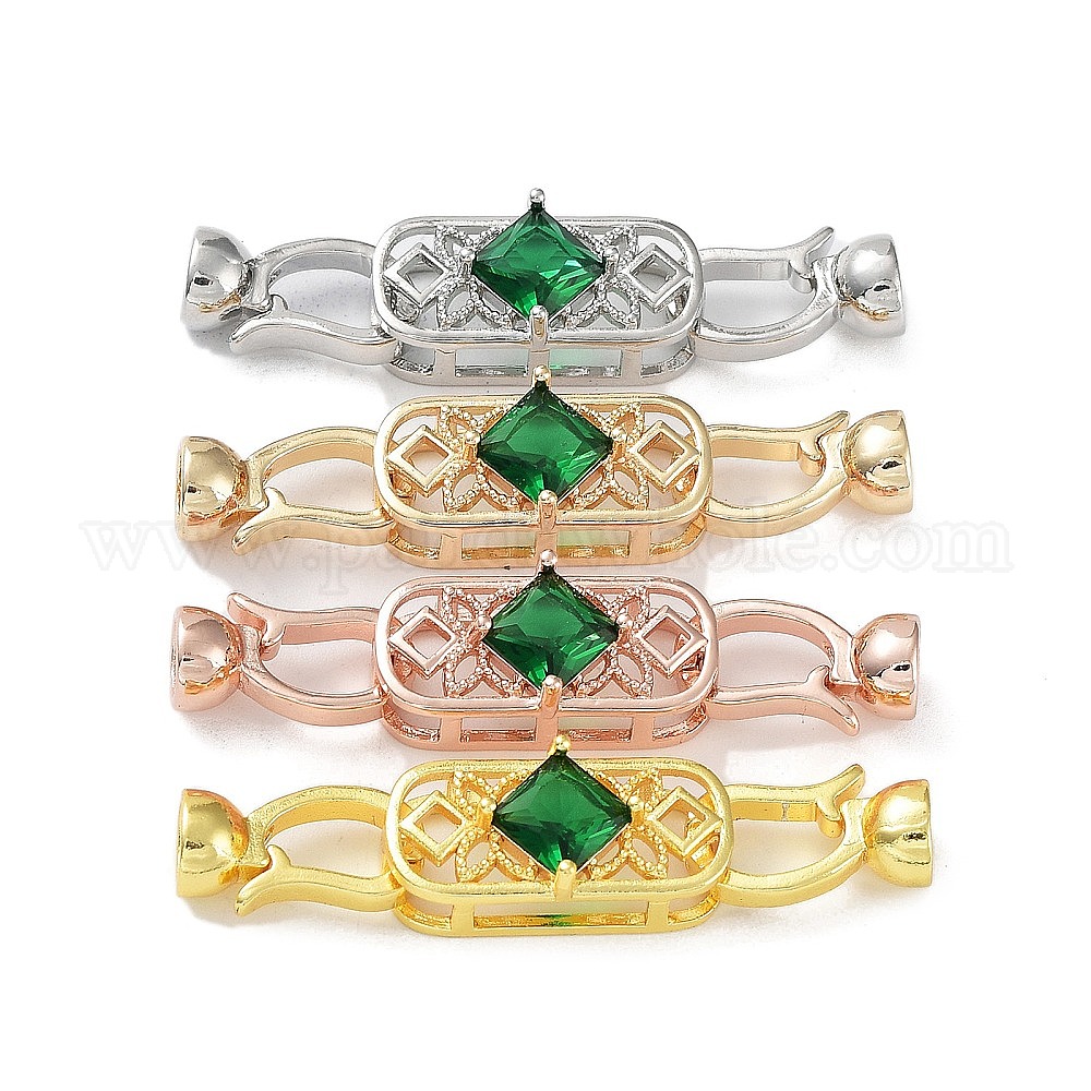 Покрытие стойки латунь паве зеленое стекло складные застежки, долговечный, без кадмия и без свинца, овальные