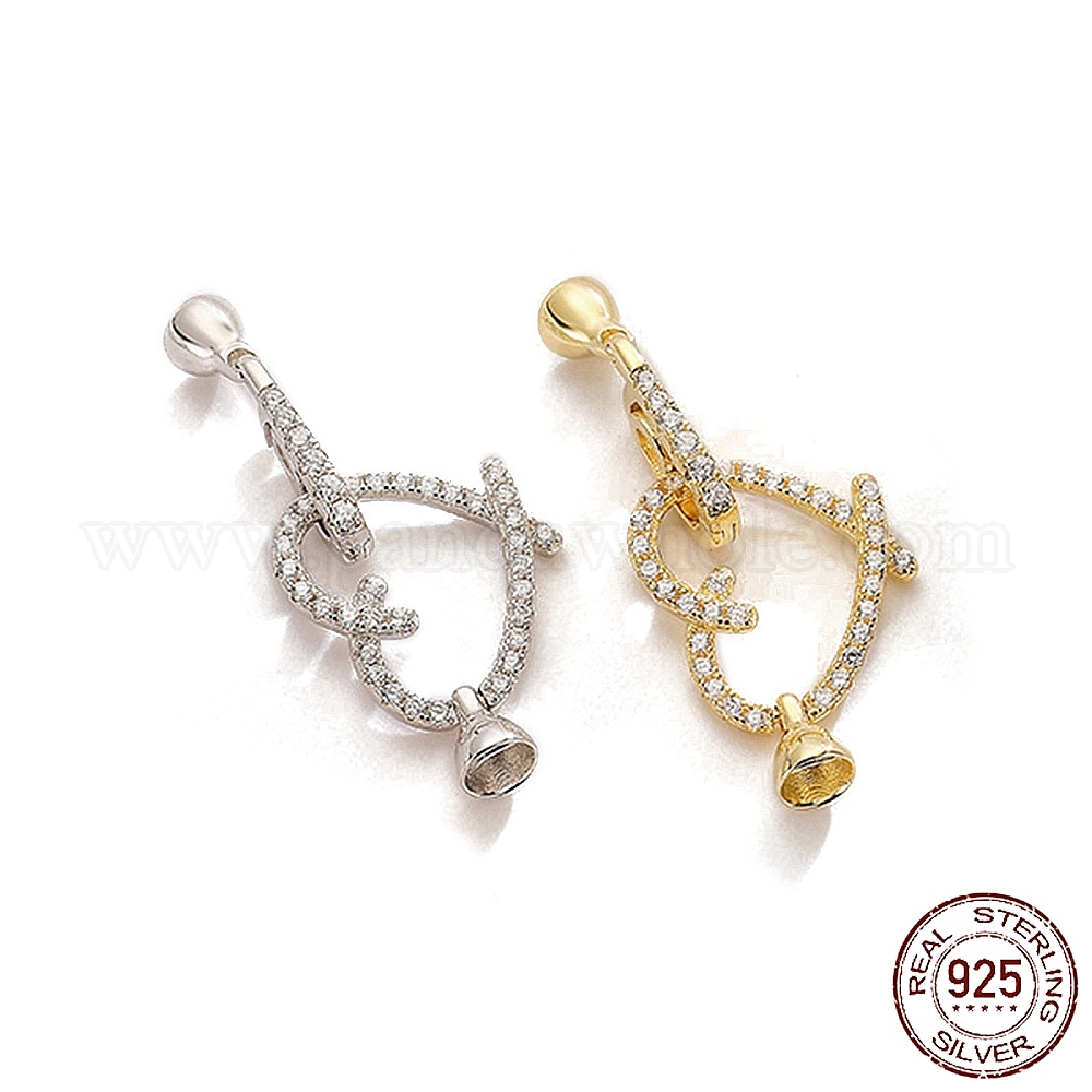925 Складчатые застежки из стерлингового серебра с микропаве из прозрачного кубического циркония, сердце
