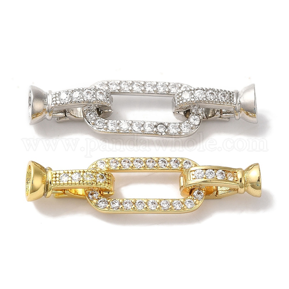 Овал прямоугольник стойка покрытие латунь микро паве прозрачный кубический цирконий складные застежки, долговечный, без свинца и без кадмия