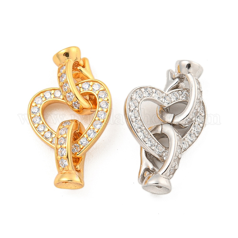 925 Складчатые застежки из стерлингового серебра с микропаве из прозрачного кубического циркония, сердце