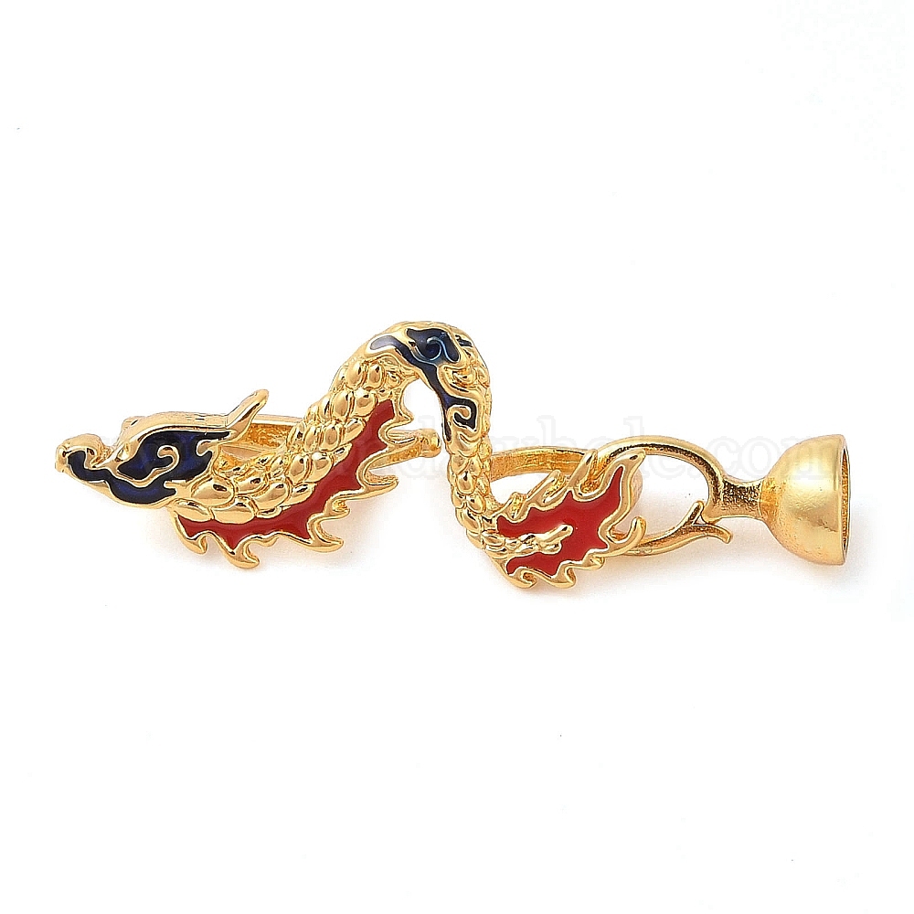 • Золотой Покрытие стойки латунь эмаль складные застежки, долговечный, без свинца и без кадмия, дракон, красные, золотые, 42x14x9 мм, отверстие : 5 мм