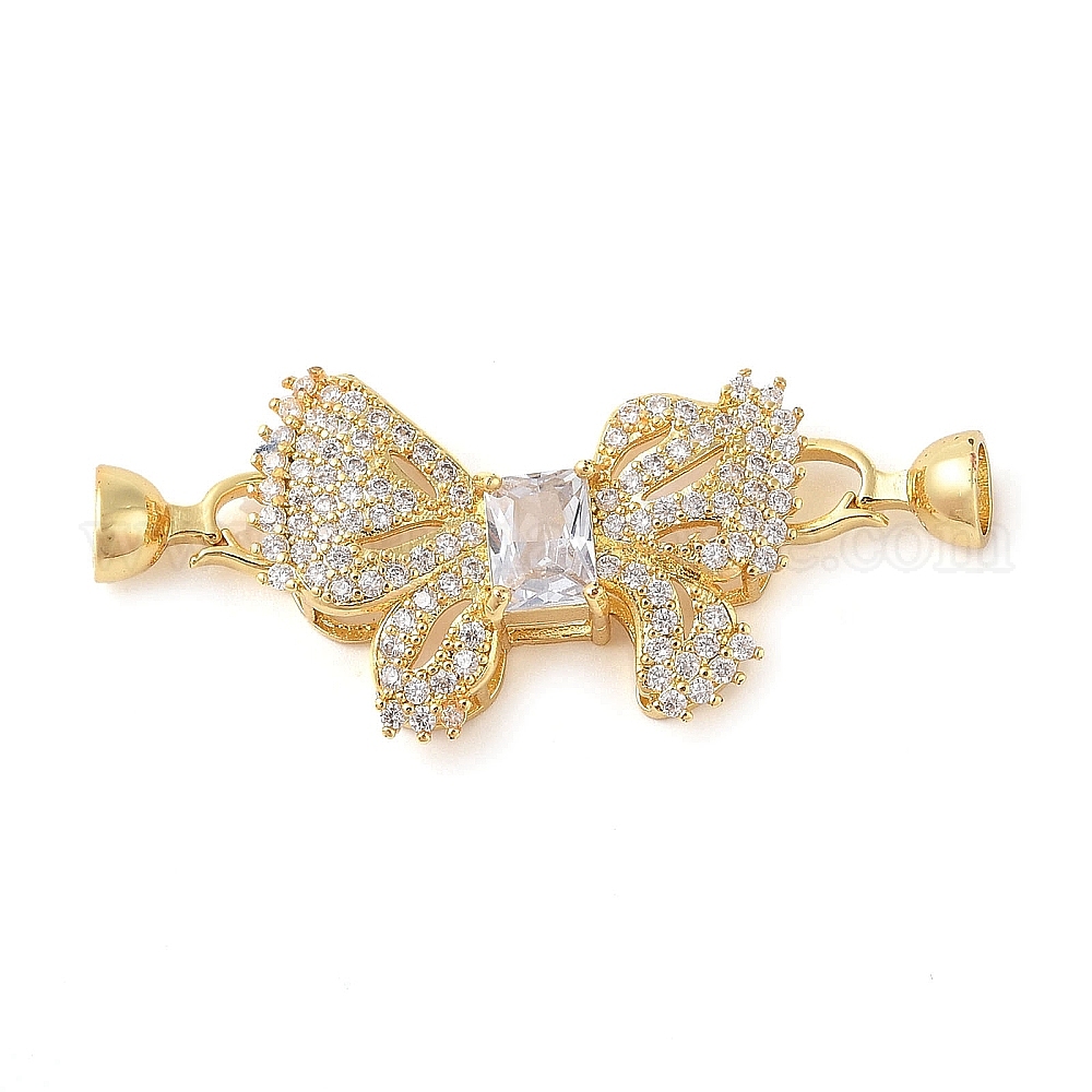 Реечное покрытие латунь микро паве прозрачный кубический цирконий складные застежки, долговечный, без свинца и без кадмия, бантом