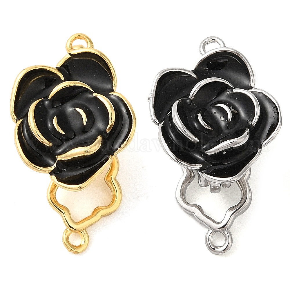 Латунь, раскладывающиеся застежки из черной эмали, без кадмия, без никеля и без свинца, цветок