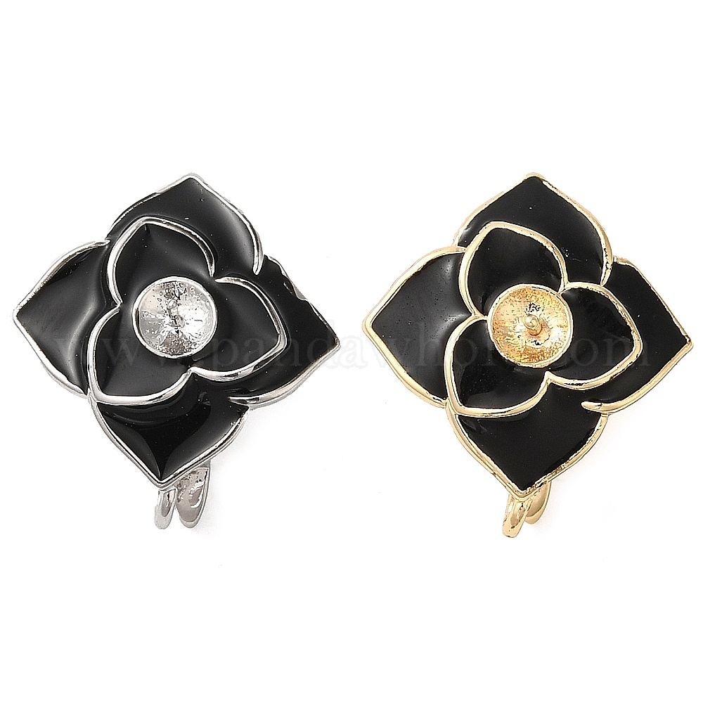 Латунь, раскладывающиеся застежки из черной эмали, без кадмия, без никеля и без свинца, цветок