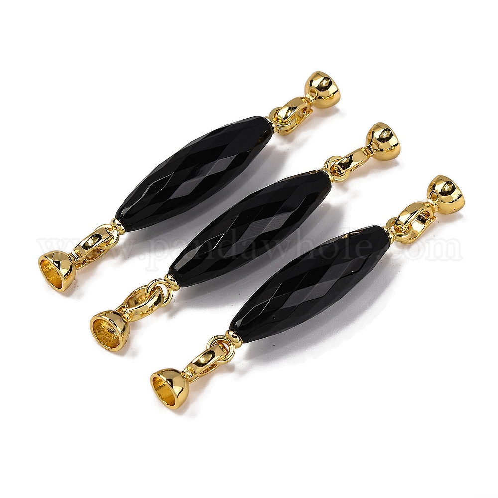 Латунная рейка с покрытием и черный ониксовый флоад над застежками, овальные, реальный 18 k позолоченный (02WYBJ)
