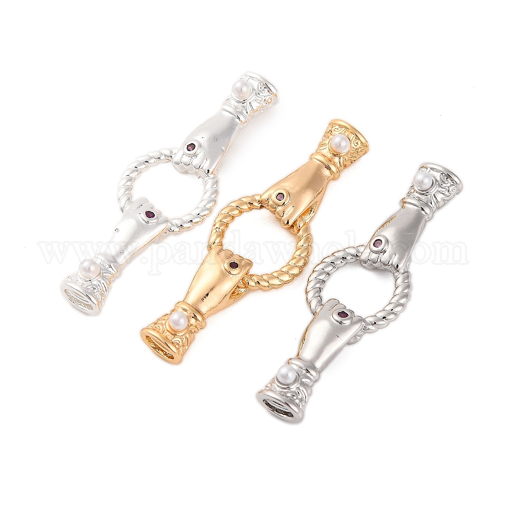 Латунное микропейв, прозрачный кубический цирконий, складные застежки, с ABS имитации жемчуга, рука с круглым кольцом