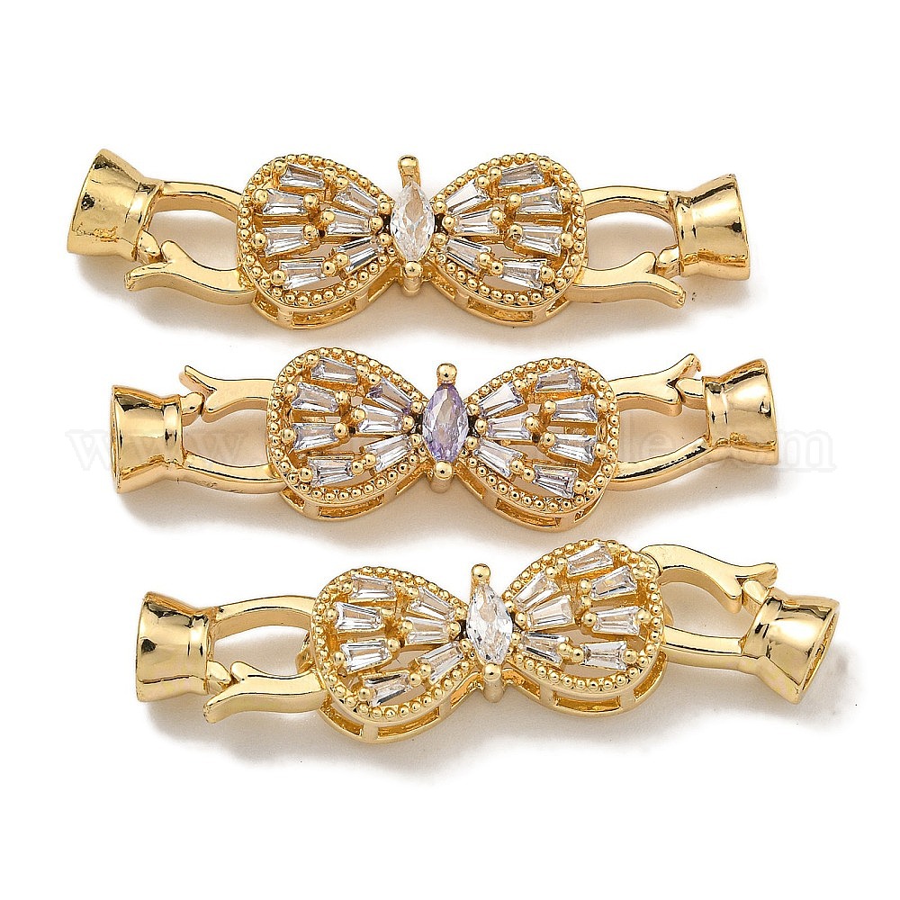 Латунные микро проложить кубического циркония раз за застежками, реальный 18 k позолоченный, бантом