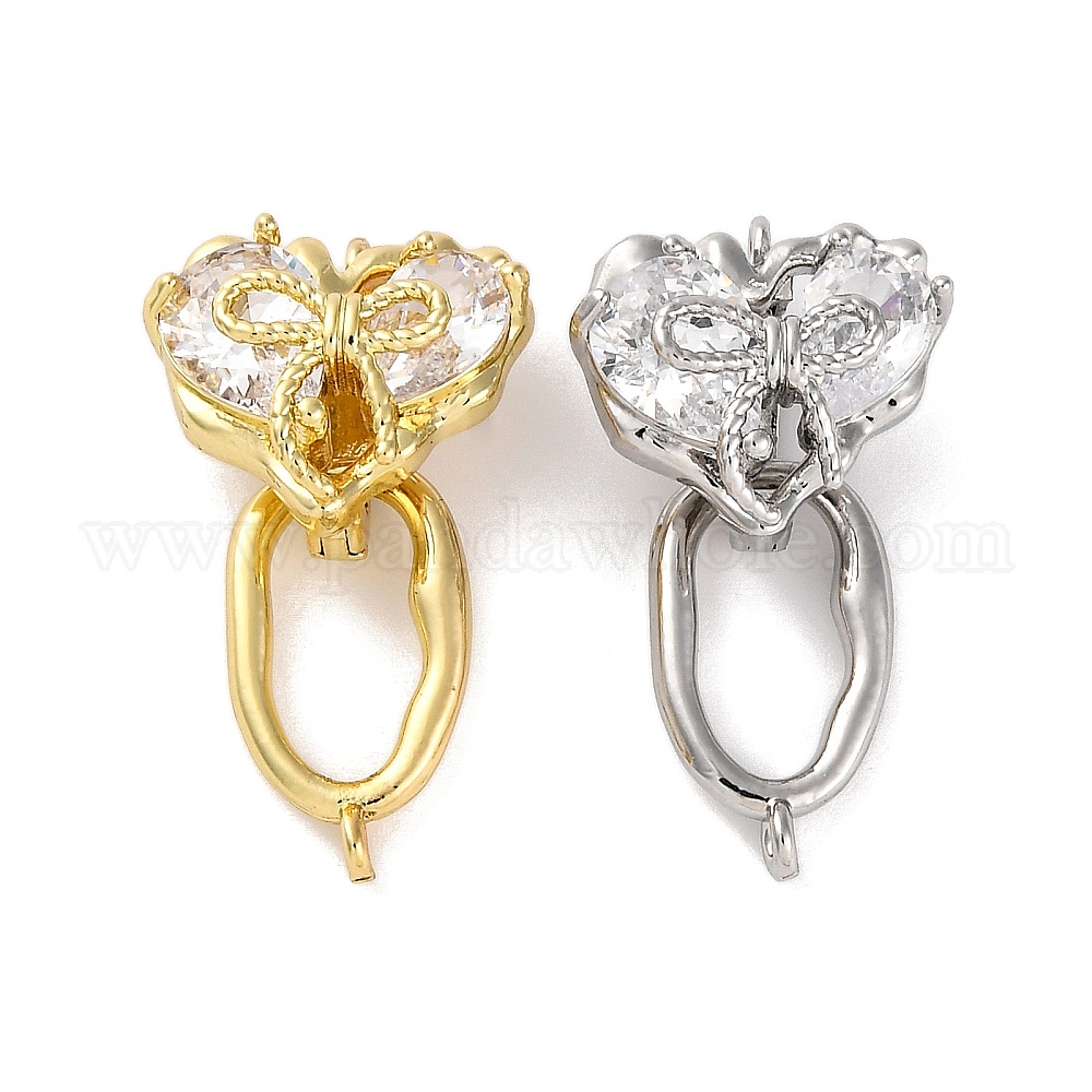 Латунное микропейв, прозрачный кубический цирконий, складные застежки, без кадмия, без никеля и без свинца, сердце