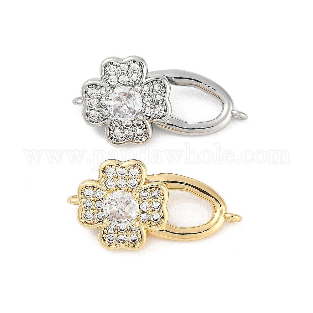 Латунное микропейв, прозрачный кубический цирконий, складные застежки, без кадмия, без никеля и без свинца, клевер
