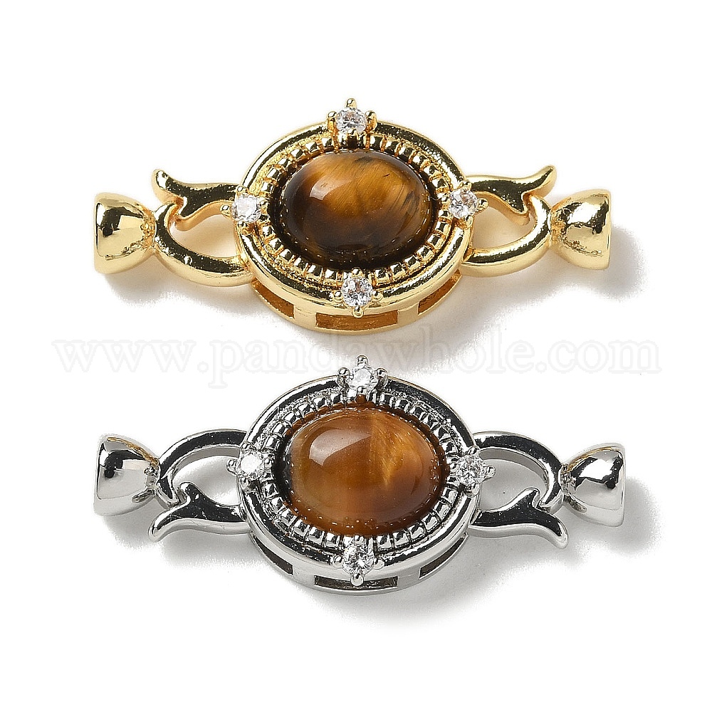 Латунные микропаве прозрачные кубические циркони складные застежки, без кадмия, без никеля и без свинца, с натуральным тигровый глаз, овальные (02YY61)