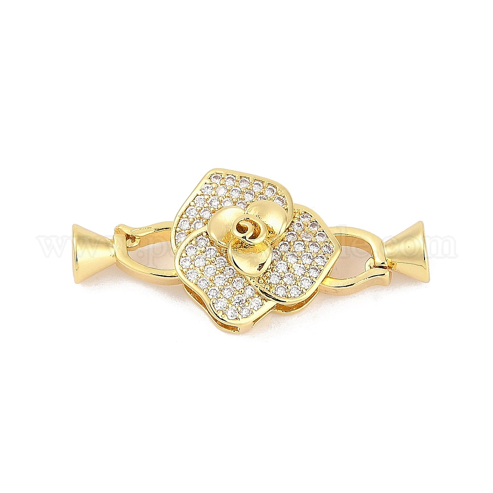 Латунное микропейв, прозрачный кубический цирконий, складные застежки, цветок