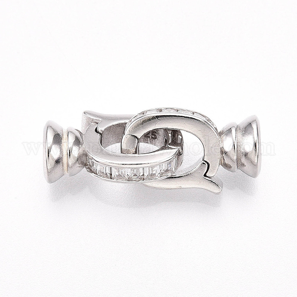 925 Складчатые застежки из стерлингового серебра с микропаве из прозрачного кубического циркония, с печатью s925