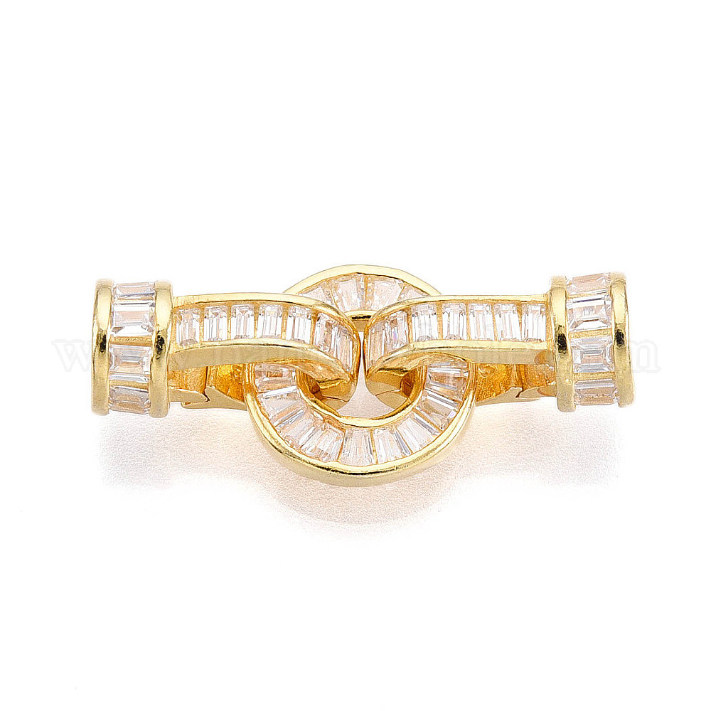 • Настоящее золото 18K 925 Складчатые застежки из стерлингового серебра с микропаве из прозрачного кубического циркония, с печатью s925, плоско-круглые, реальный 18 k позолоченный, 24x10x6.1 мм, застежки: 11x6.1x5.8 мм, отверстие : 2.5 мм, ring: 10x1.8, отверстие : 4.2 мм