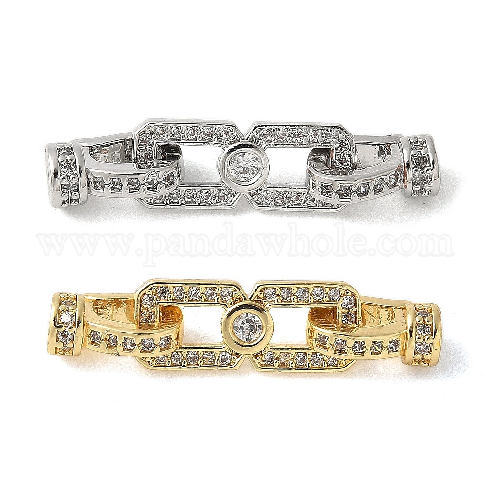 • Платина Латунный паве из прозрачного кубического циркония с застежками, без свинца и без кадмия, долговечный, стойки покрытие, прямоугольные, платина, 27 мм