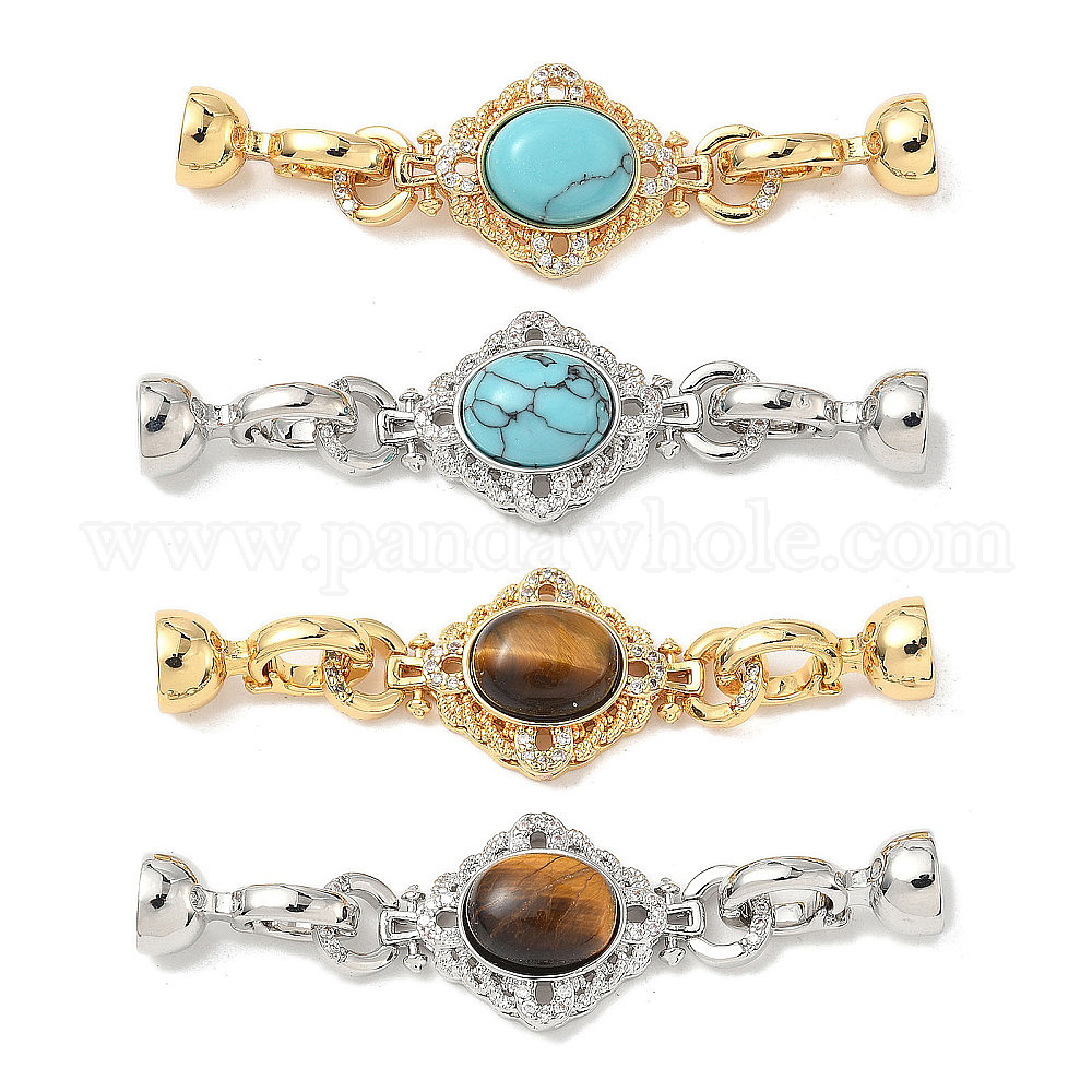 Латунное микропейв, прозрачный кубический цирконий, складные застежки, без кадмия, без никеля и без свинца, с натуральным тигровым глазом/синтетической бирюзой, ромб