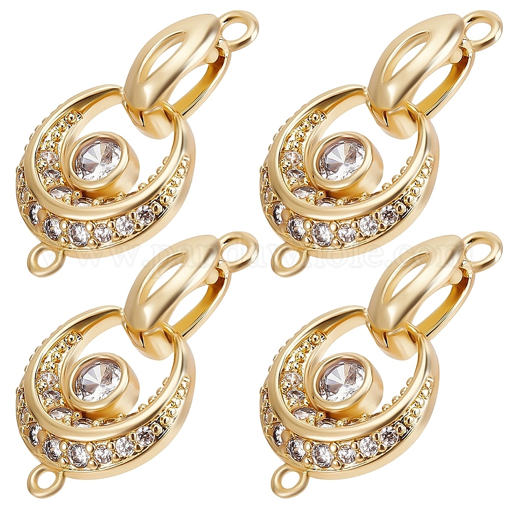 6шт. латунные микропаве прозрачные кубические цирконии складные застежки, луна (03467Y)