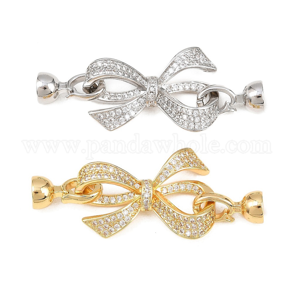 Латунное микропейв, прозрачный кубический цирконий, складные застежки, бантом