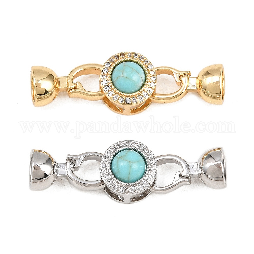 Латунное микропейв, прозрачный кубический цирконий, складные застежки, с синтетическими бирюзовый, плоско-круглые