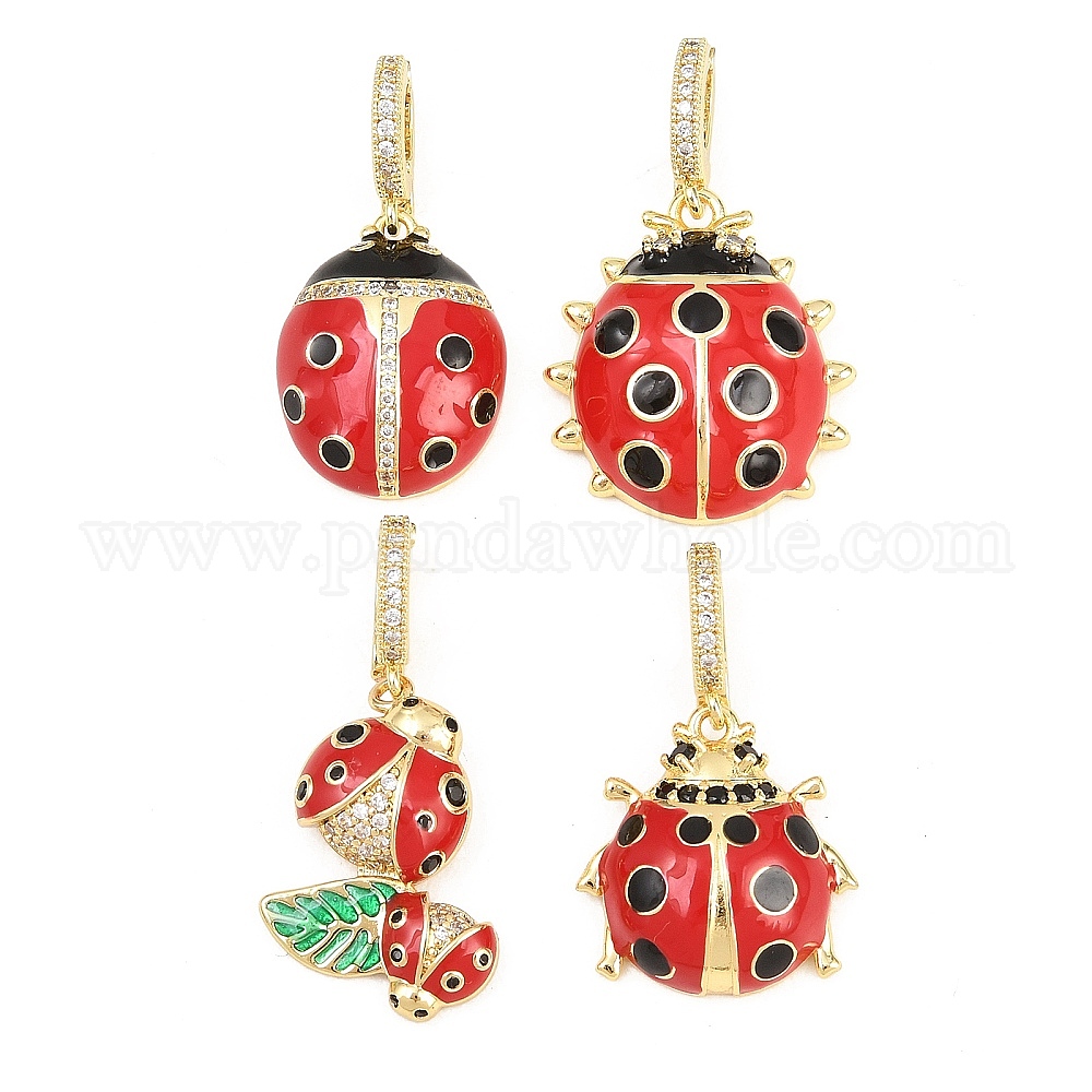 Латунные микро проложить кубического циркония раз за застежками, с эмалью, прелести божьей коровки, стойки покрытие, долговечный, без свинца и без кадмия