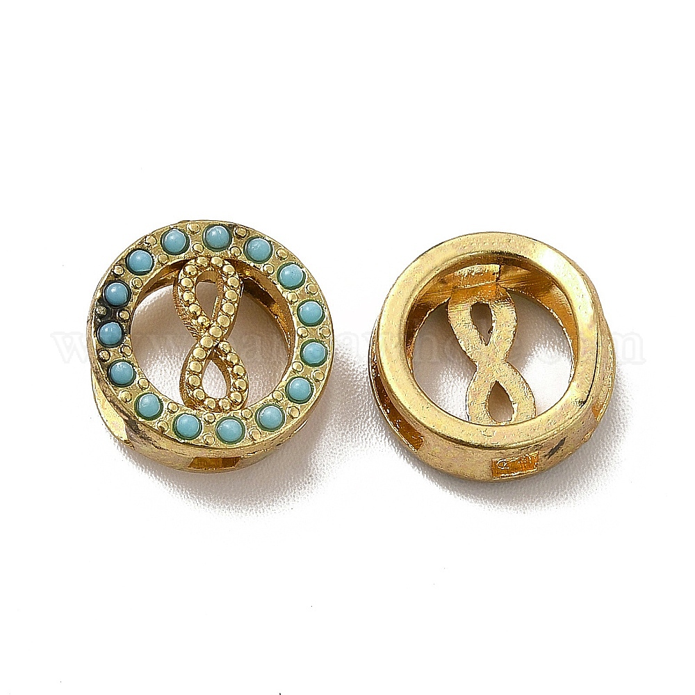 • Бирюза Прелести сплава слайд, с синтетическими бирюзовый, плоский круглый и бесконечность, бирюзовые, 12x5 мм, отверстие : 2~8x2~3 мм