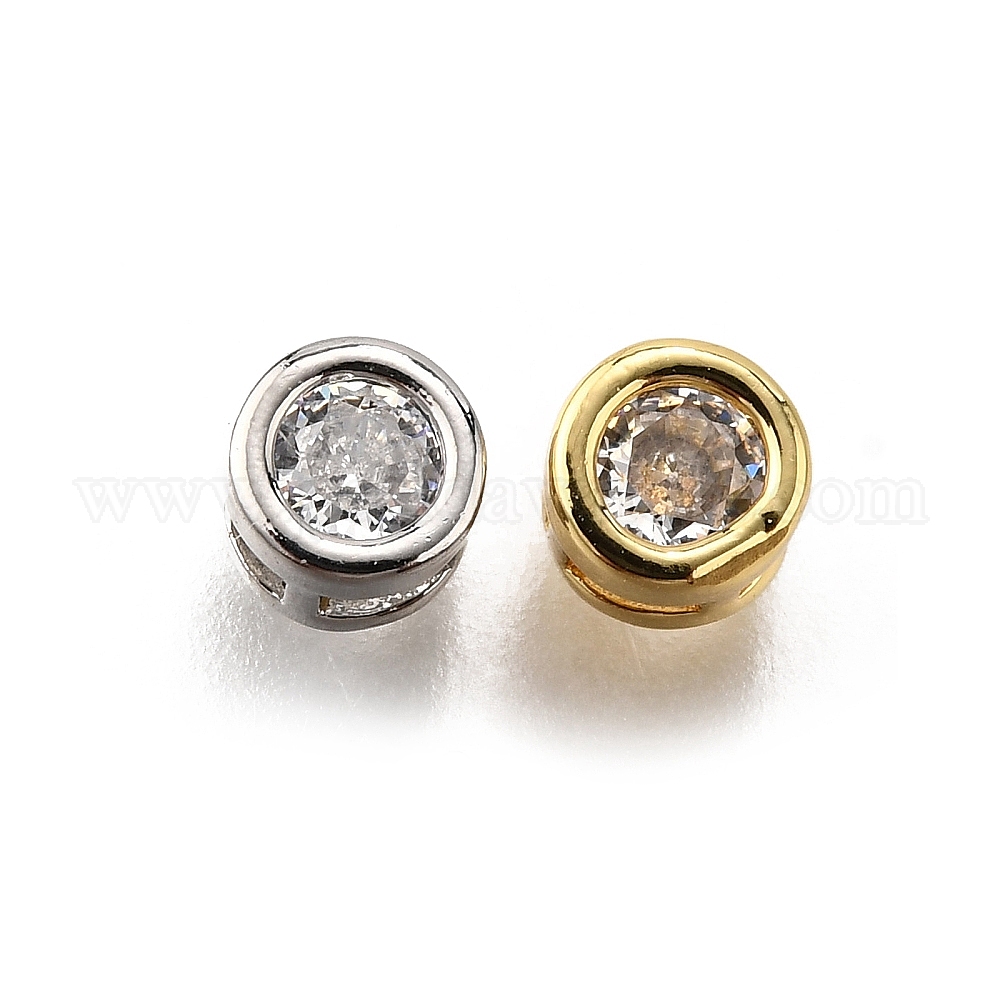 Плоские круглые латунные подвески-санки с микропаве из прозрачного кубического циркония, стойки покрытие, без кадмия и без свинца, долговечный