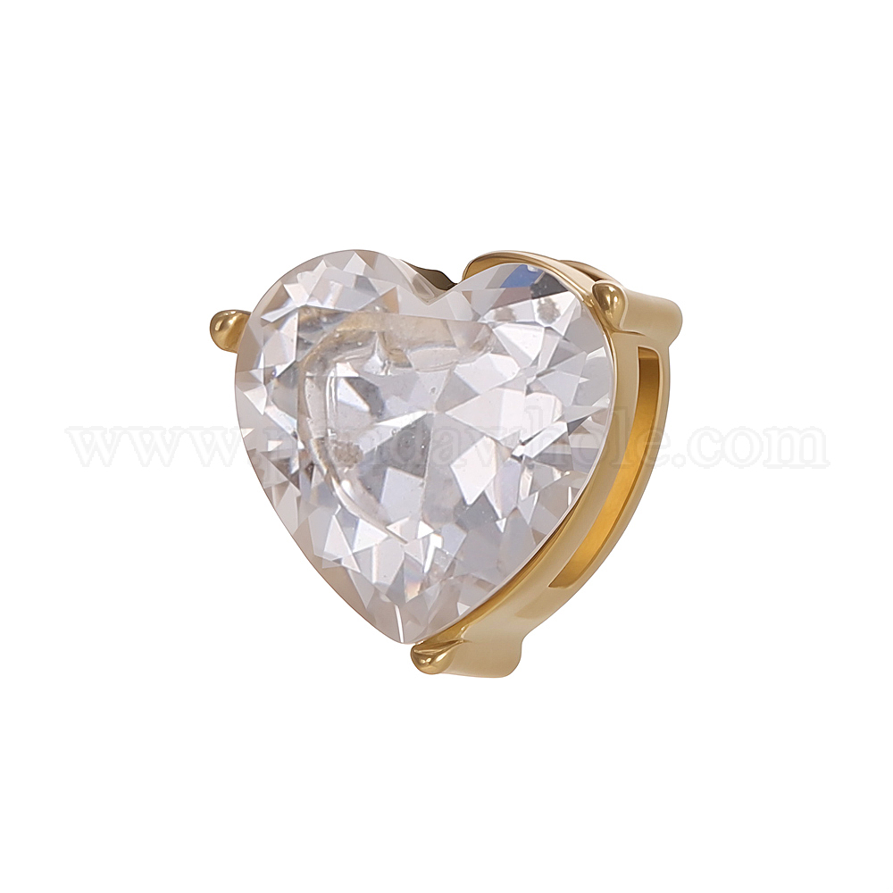 304 Подвески-слайдеры из нержавеющей стали с прозрачными кубическими циркониями, сердце, ионное покрытие (ip)