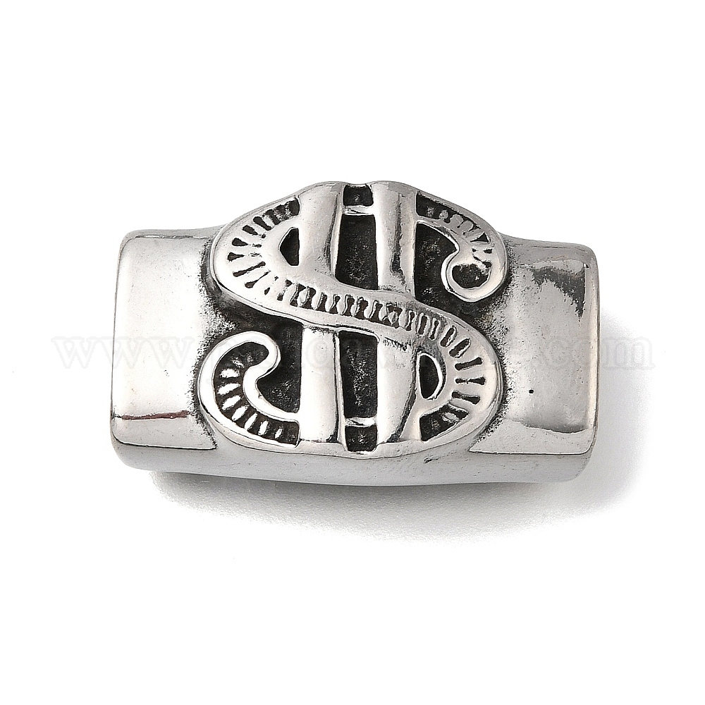 • Античное Серебро 304 из нержавеющей стали слайд прелести, для изготовления кожаных браслетов, прямоугольник со знаком доллара, античное серебро, 31.5x19x11 мм, отверстие : 12.5x6.5 мм