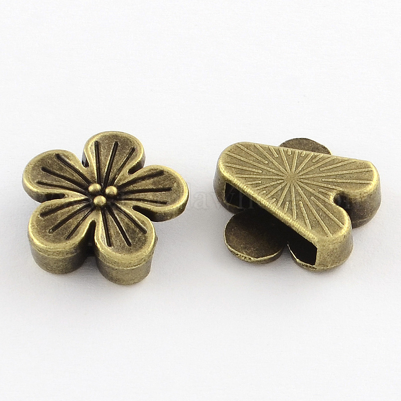 Тибетский стиль цветок сплава слайд прелести, без кадмия и без свинца, 16x16.5x5 мм, Отверстие : 12x3 мм , около 444 шт / 1000 г