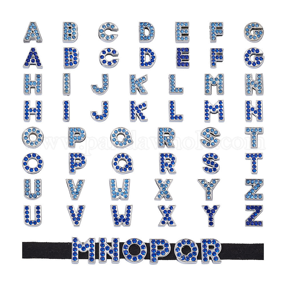 • (52) Непрозрачная лаванда 52 шт 2 цвета сплава подвески с горным хрусталем, Письмо ~ Z, без кадмия и без свинца, платина, разноцветные, 12 мм, 26 шт / комплект, 1set / цвет